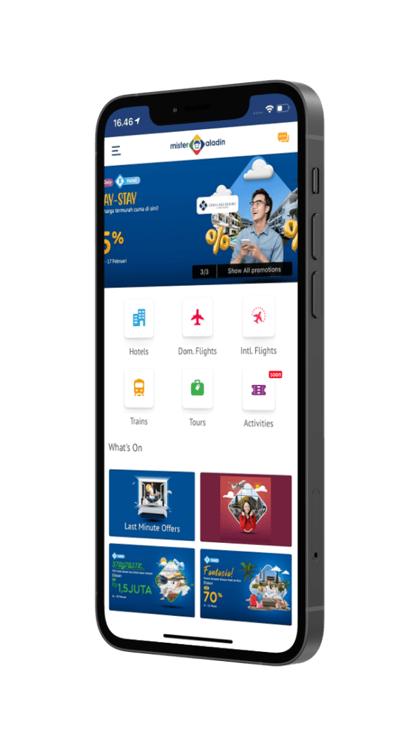 With the Mister Aladin app, you can find a wide variety of hotels categorized based on your travel style. You can also get quality service with the help of a personal travel assistant who is ready to meet all your travel needs anywhere and anytime through personal chat.